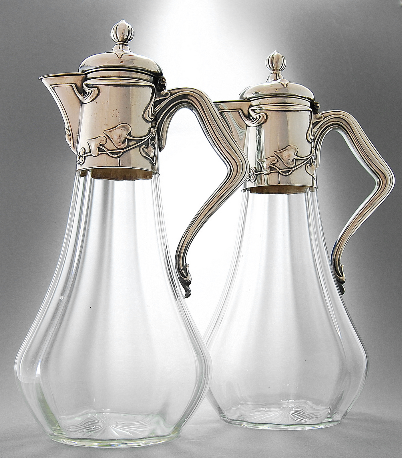 GERMAN SILVER AND CLARET JUGS