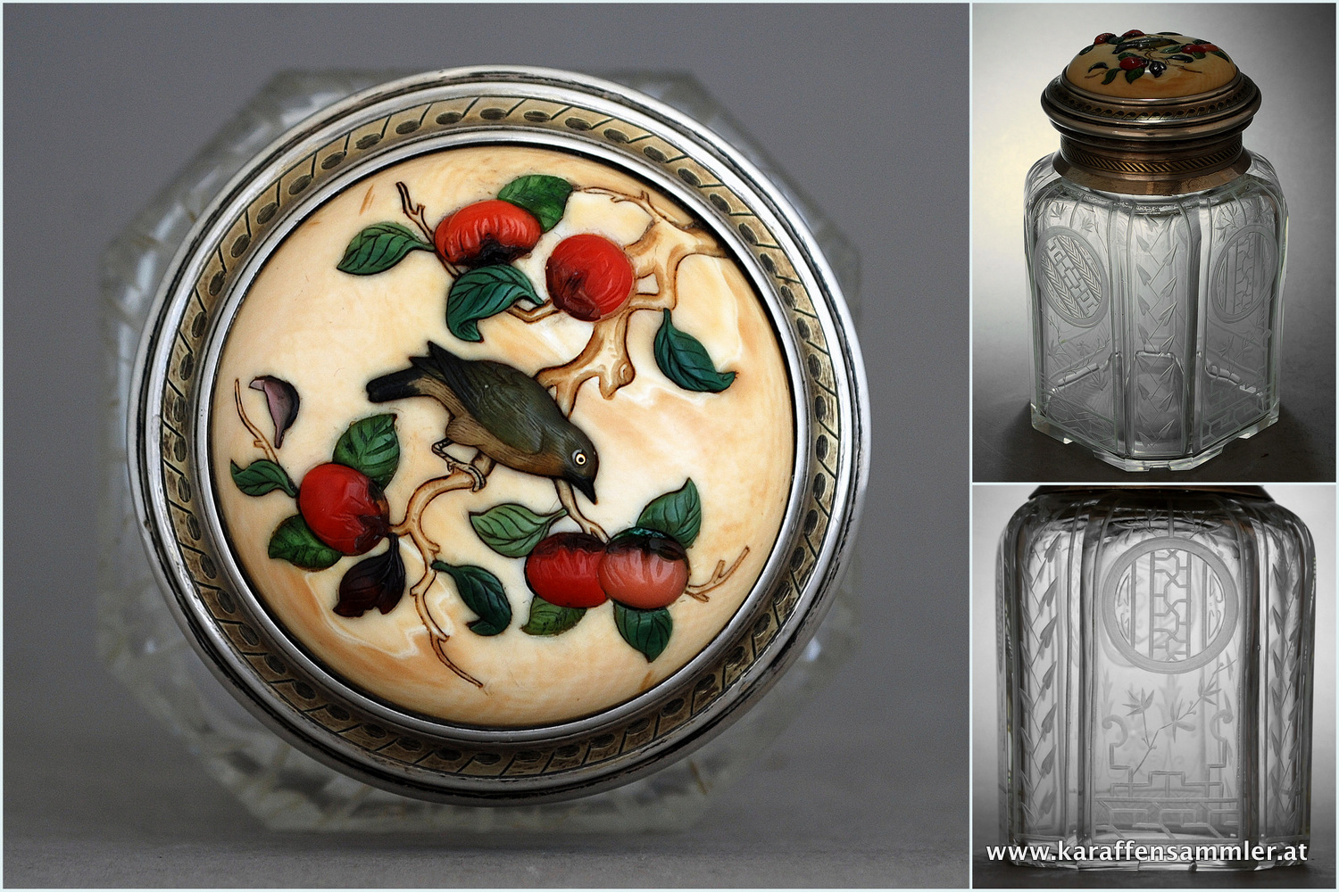 Tea Caddy by Henry William Dee, London 1875 with FINE INLAID IVORY MANJU NETSUKE OF KACHO-GA TYPE