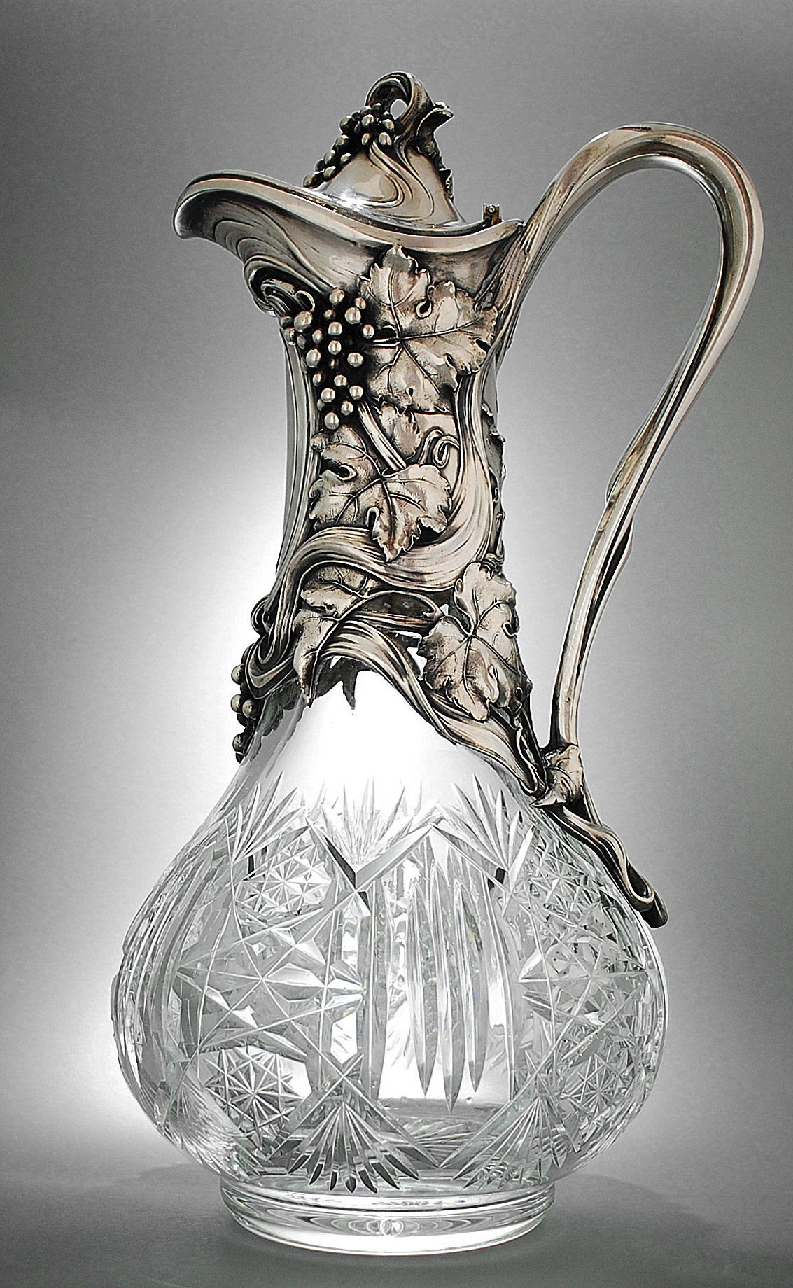 heavy cast and modelled silver mounting German silver claret jug Koch & Bergfeld - Bremen c 1880 for the russian market 5 piece decanter set by Csokally / Koch & Bergfeld 1890