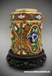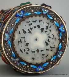 Chinese enamel semi-precious stones silver tea caddy with jade top