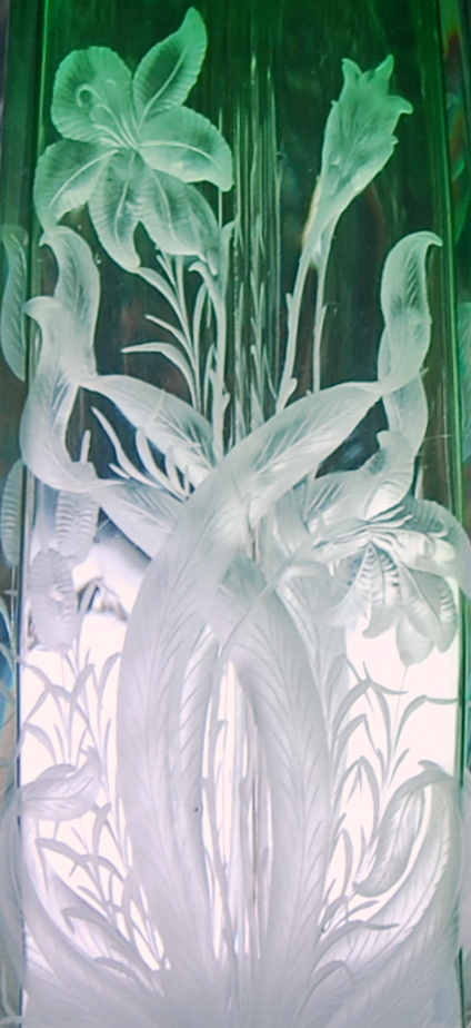 Detail of finely engraved glass by Moser - Karlsbad - Czechoslovakia