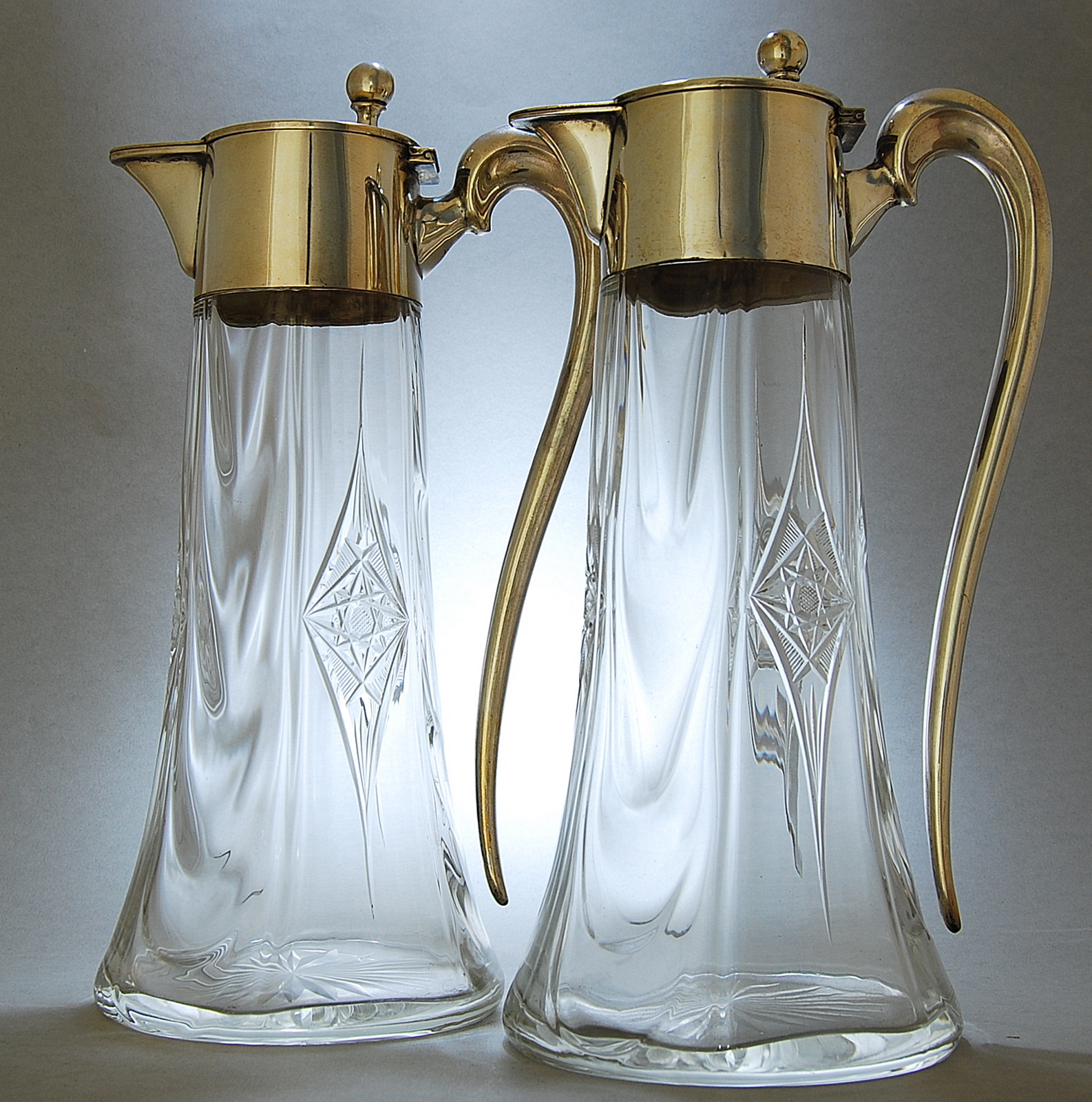 GERMAN SILVER AND CLARET JUGS